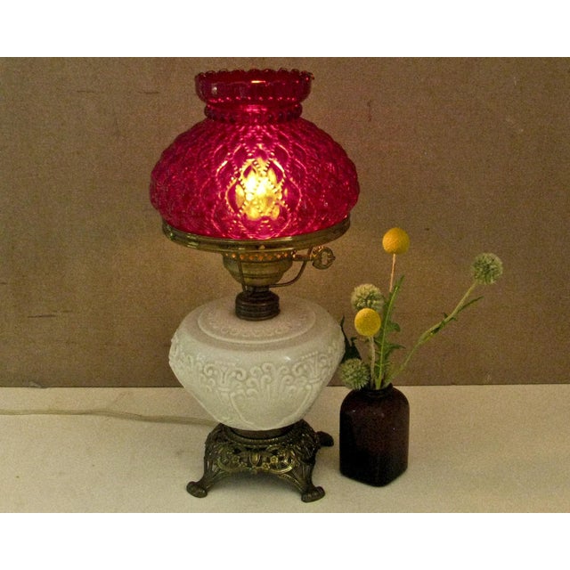 Vintage milk glass oil lamp hurricane lamp. Milk glass hurricane table lamp light brass base brown flowers, 8 shade ring. Vintage brass plated and glass electric double arm student desk hurricane lamp. Perfect addition to your boudoir, dresser, vanity, bathroom, miniature or milkglass collection. $29.99 vtg white milk glass boudoir hobnail hurricane chimney vanity lamp shade only.